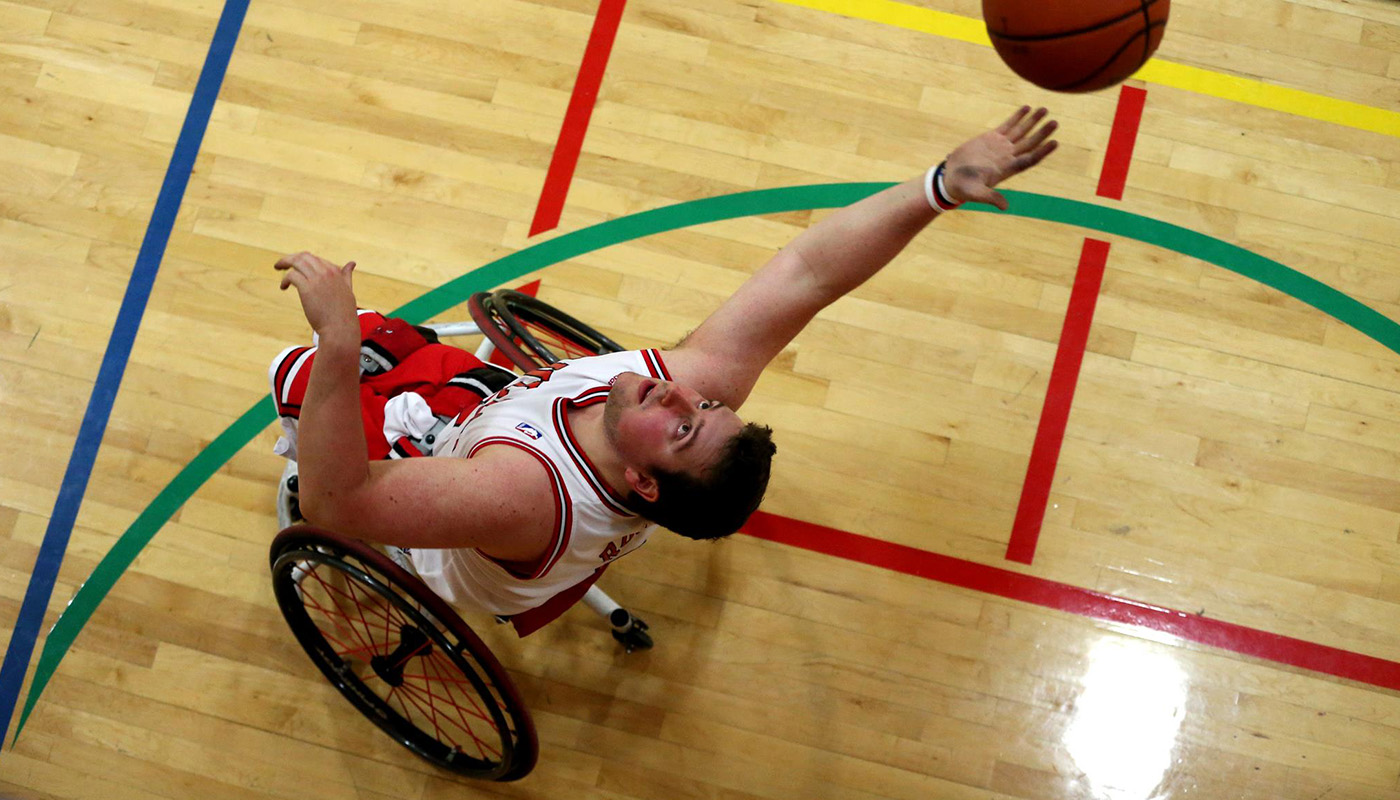 Wheelchair basketball was developed in the 1950s by Doctor Guttman. The rules are the same except for contact violations. Special attention is paid to the wheelchair, whose specs are strictly regulated. In addition, the players must be strapped in.